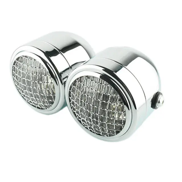 Universal Motorcycle Chrome Grill Twin Headlight Motorcycle Double Dual Lamp Bobber Chopper Atv Sco
